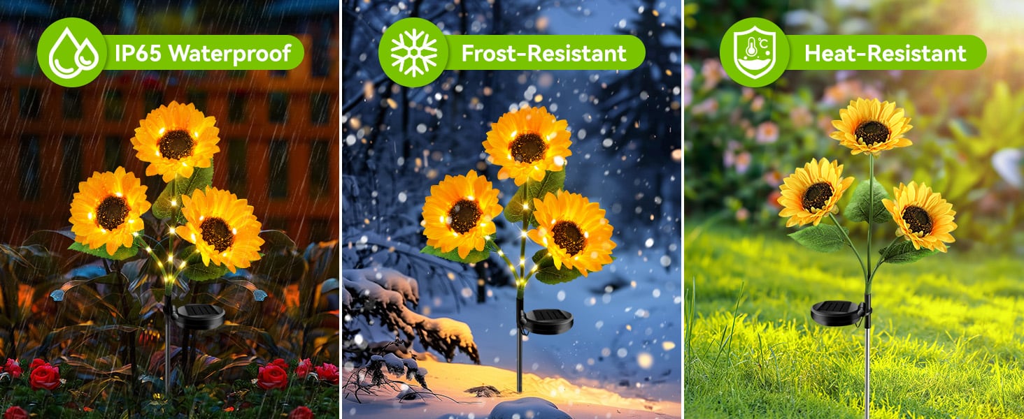 🌻 Tough as the sun, bright as your smile! 🌞 IP65 waterproof 💦, heat-resistant 🔥, and freeze-resistant ❄️—blooming boldly in any weather, shining through every storm. No matter where you plant them, they’ll glow fiercely & cheerfully! ✨